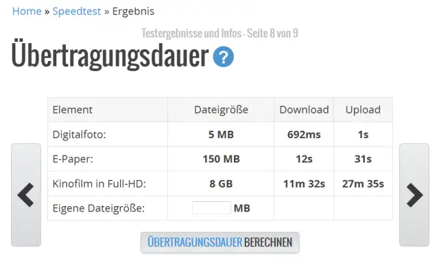 Bild 7: Mit Wieistmeineip.ch erfahren Sie, wie sich die gemessene Geschwindigkeit auf grössere Down- und Uploads auswirkt