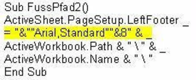 Wie kann ich das VBA-Modul, das den Dateipfad in der Fusszeile einträgt, so ergänzen, dass es auch gleich die Schrift in Arial 8 formatiert?