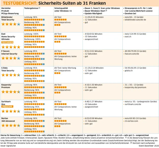 Testübersicht: Sicherheits-Suites ab 31 Franken