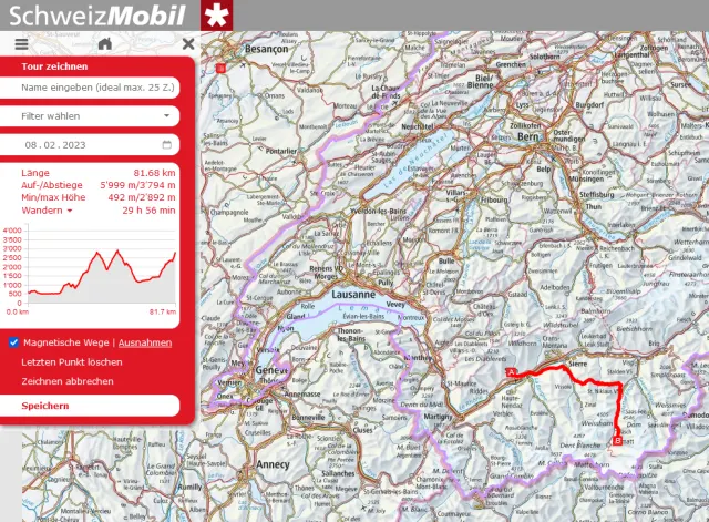 - Zeichnen und Berechnen von eigenen Touren auf der Webkarte von SchweizMobil.