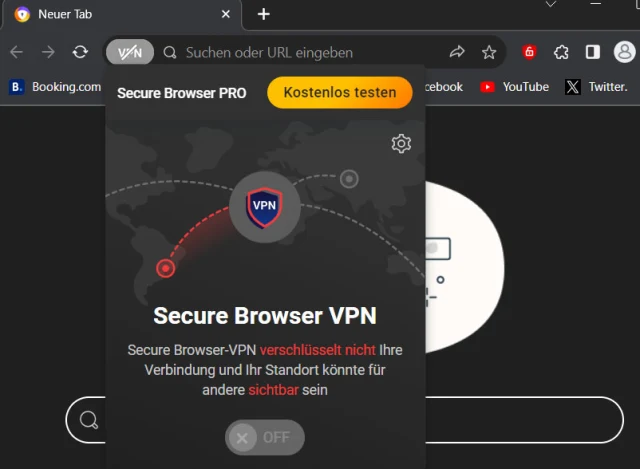Ausserdem wird mit dem Programm für den Desktop automatisch der Avast Secure Browser geliefert. Dieser bietet ein VPN. Will man dieses aktivieren, erfährt man, dass der Dienst kostenpflichtig ist. Wenigstens kann man ihn 30 Tage gratis testen, danach werden mindestens Fr. 8.50 pro Monat fällig, Bild 3.