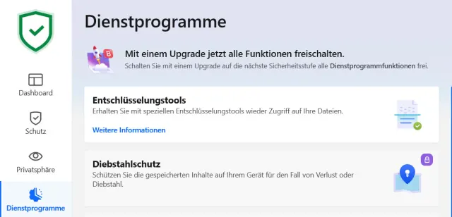 Nette kostenlose Zusatz-Features sind ein Passwortschutz und ein Sicherheits-Widget. Besonders aufgefallen sind die Entschlüsselungs-Tools gegen Erpressungstrojaner. Hier stehen Darkside Decryptor, GandCrab und REvil/Sodinokibi Decrypter gratis zur Verfügung. Darkside Decryptor stellt Dateien wieder her, die von Darkside-Ransomware verschlüsselt wurden, GandCrab identifiziert und entschlüsselt von GandCrab angegriffene Dokumente und REvil Decrypter kehrt den Verschlüsselungsprozess um und stellt so Dateien sicher wieder her. Diese Tools hat der PCtipp nicht ausprobiert.