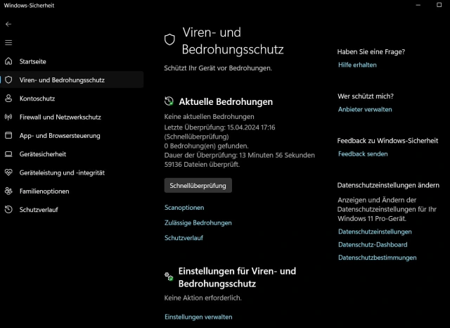 Bild 6: Microsoft Defender ist Teil von Windows-Sicherheit. In der Übersicht ist zu sehen, welche Funktionen aktiv sind