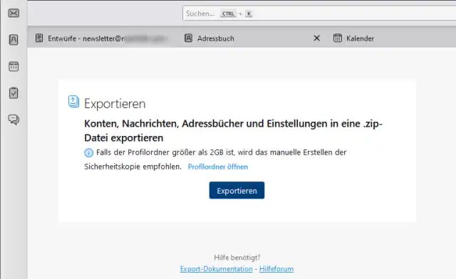 Bild 10: Alle Konten, E-Mails, Adressbücher und Einstellungen lassen sich als ZIP-Archiv exportieren