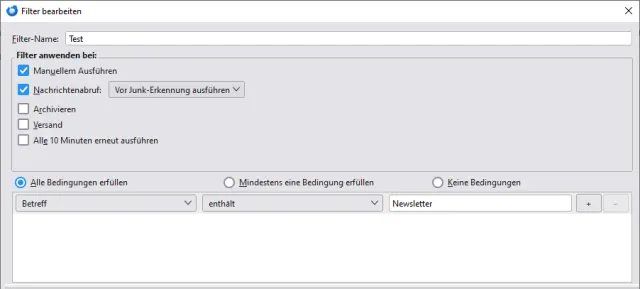 Ein überquellender Posteingang nervt. Thunderbird bietet einen einfachen Weg, E-Mails zu organisieren: die Filterregeln. Die Filter können bestimmte E-Mails automatisch in andere Ordner verschieben, markieren oder löschen. So kann man Filter etwa dazu nutzen, um Newsletter direkt in einen separaten Ordner zu verschieben und so den Posteingang übersichtlich zu halten.