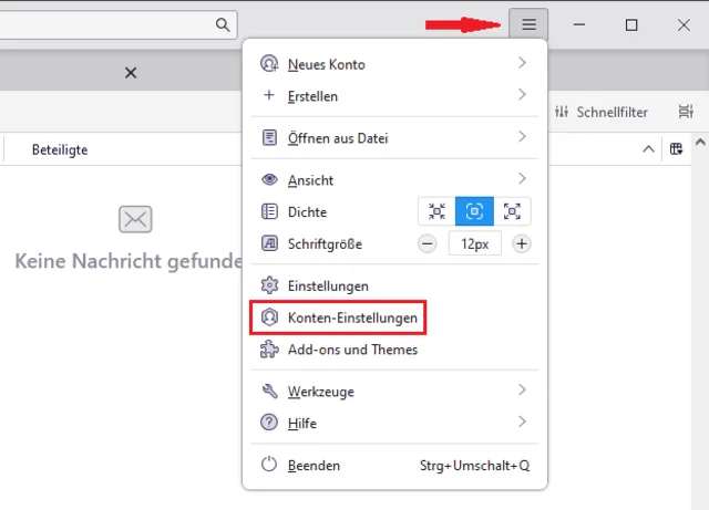 Quelle: PCtipp.chDas Anwendungsmenü verbirgt sich hinter dem Symbol mit den drei Strichen rechts oben. Hier finden Sie die zentralen Einstellungen des E-Mail-Clients, Menüpunkte zur Ansicht und zur Schriftgrösse sowie Add-ons und Werkzeuge. Ein weiteres Menü namens Optionen für den Ordnerbereich öffnet sich nach einem Klick auf die drei Punkte rechts neben dem Button Neue Nachricht. Diesen wiederum nutzen Sie, um eine neue E-Mail zu schreiben.