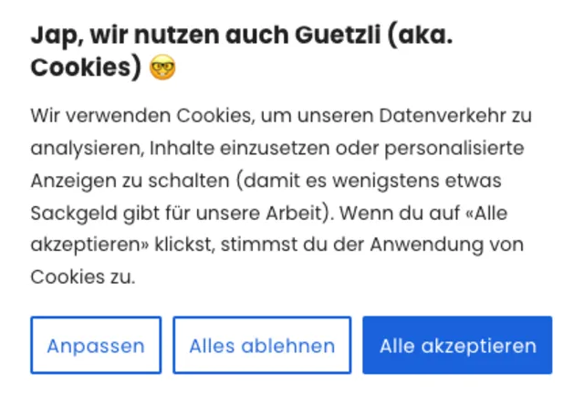 Bild 5: Cookie-Banner sind in der Schweiz nicht Pflicht, wegen Google allerdings trotzdem sinnvoll