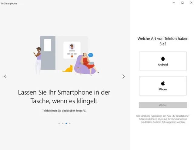 Hinweis 2: Microsoft bringt neue Funktionen für die Ihr-Smartphone-App. Künftig soll man auch vom PC Handy-Apps steuern können. Momentan funktioniert dies aber offenbar nur für ausgewählte Samsung-Geräte. Welche Geräte unterstützt werden, erfahren Sie in dieser Microsoft-Support-Webseite.