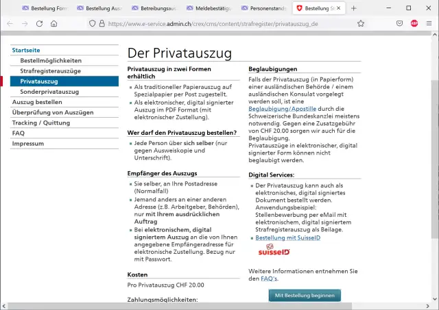Bild 5: Auch das geht problemlos übers Internet – die Webseite zum Bestellen des oft verlangten Strafregisterauszugs