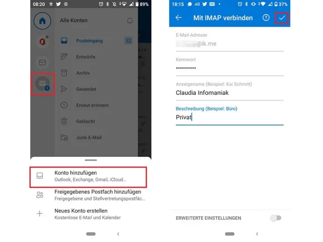 Der Schweizer Webhoster Infomaniak hat einen kostenlosen, in der Schweiz entwickelten und gehosteten E-Mail-Dienst namens ik.me lanciert (PCtipp berichtete). Sie haben eine Infomaniak-E-Mailadresse erstellt und möchten nicht nur am Laptop via Webmail die eintrudelnden Mails lesen. So können Sie auf dem Smartphone diese neue E-Mailadresse zu Ihrer Outlook-365-App hinzufügen.