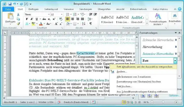 Quelle: PCtipp.chIn den aufgelisteten Formatvorlagen sollte die verwendete markiert sein. Klicken Sie mit der rechten Maustaste darauf und wählen Sie (Vorlagenname) aktualisieren, um der Auswahl zu entsprechen. Word ändert die Einstellung der Formatvorlage; alles, was damit formatiert wurde, passt sich auf einen Schlag an.