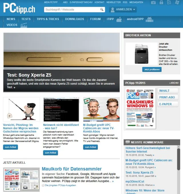 Die PCtipp-Webseite im Oktober 2015.