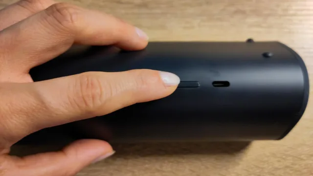 Die Einschalttaste auf der Rückseite eines Sonos Roam