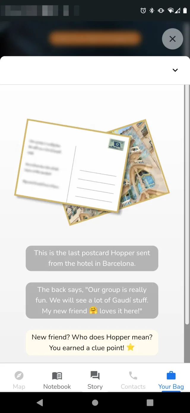 Erste Schritte: Wählen Sie «Where is Hopper?» aus und tippen bzw. klicken Sie auf die Schaltfläche Spielen sowie auf Start. Lesen Sie die Story und Sie werden Schritt für Schritt durch das Spiel geführt. Wie in den Abenteuerbüchern früher in der Schule gibt es mehrere Reaktionsoptionen, aus denen Sie auswählen können und die den Spielverlauf (leicht) beeinflussen.