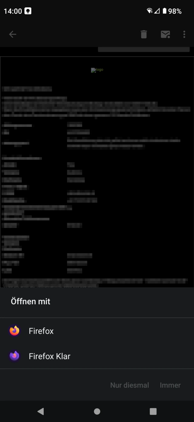 Wer jedoch möchte, dass sein Android-Gerät beim Antippen eines Weblinks auch jedes Mal fragt, welcher zu benutzen sei, kann es nur auf älteren Android-Versionen noch mit der Variante 2 probieren. Spätestens seit Android 12 ist damit aber Schluss. Sobald einmal ein Standardbrowser gewählt ist, können Sie auf normalem Weg nicht mehr festlegen, dass Ihr Gerät wieder jedes Mal fragt, wenn Sie etwa in einer Mail einen Weblink antippen.