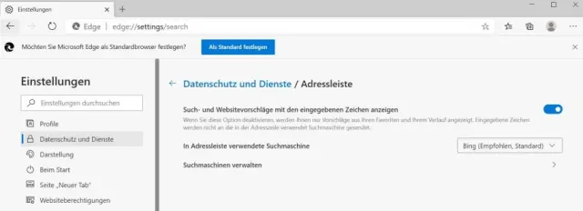 Standardsuchmaschine von Microsoft Edge ändern