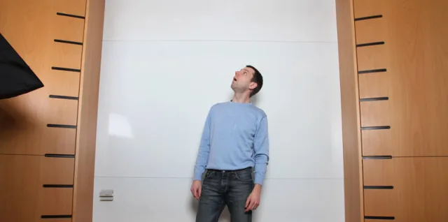 Quelle: PCtipp.chAuf diesem Bild ist die Aufstellung alles andere als optimal: Das Licht von oben wirft zum Beispiel einen Schatten unter die Nase. Auch an der Wand sind Schatten vom Blitz zu sehen, die jedoch dank der Softbox sehr weich sind.