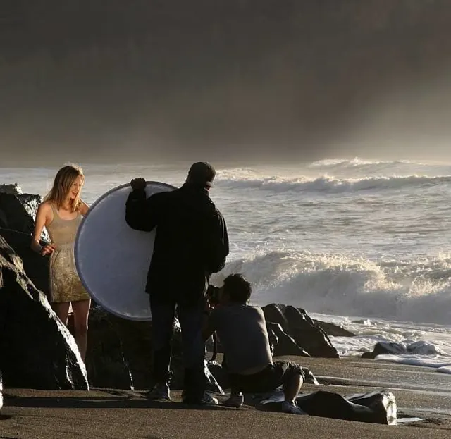 Ein Model wird mit einem Aufheller beleuchtet (Bild: Broken Inaglory, Wikimedia Commons)