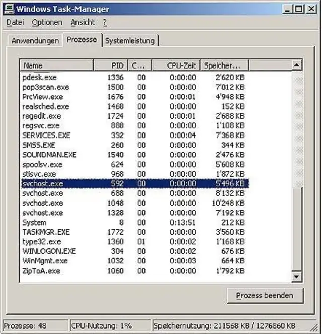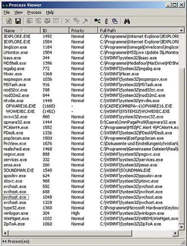 Sie können genau nachforschen, welche Svchost-Dienste aktiv sind. Laden Sie das Programm Process Viewer herunter und installieren es. Laden Sie zudem das Programm Tlist.exe herunter und legen es in einem Ordner ab.
