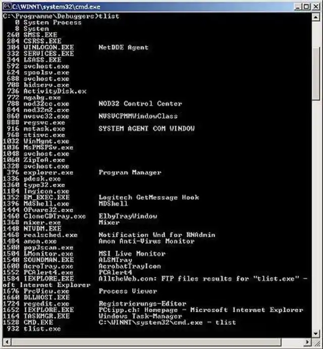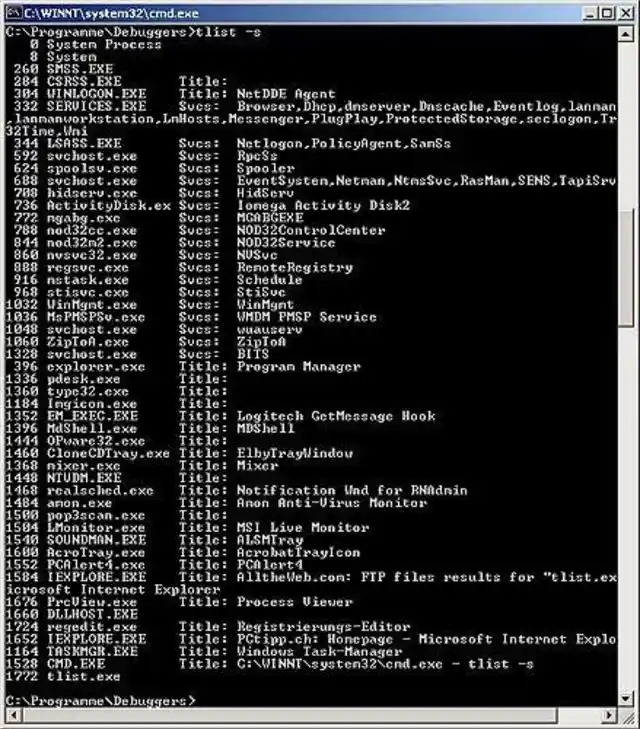 Quelle: PCtipp.chSie können auch noch anders überprüfen, wie viele Instanzen von Svchost.exe laufen und welche Dienste Svchost bedient. Gehen Sie zu Start, tippen Sie cmd ein und öffnen Sie das Programm cmd.exe. Im jetzt geöffneten Konsolenfenster navigieren Sie zum Ordner, in den Sie die Datei «Tlist.exe» abgelegt haben. Starten Sie Tlist.exe mit der Eingabe tlist in der Kommandozeile. Damit erscheinen alle momentan aktiven Prozesse. In unserem Beispiel sollten es vier Svchost-Instanzen sein.