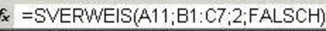 Die SVERWEIS-Formel sieht dann folgendermassen aus: