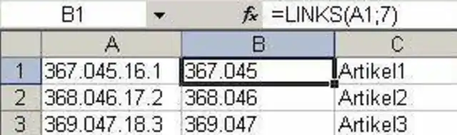 Wenn Sie nur einen Teil des Suchkriteriums eingeben wollen, geht es nicht ohne eine Zusatzspalte in der Artikeltabelle. In dieser Spalte müssen die Artikelnummern im Format des Suchkriteriums vorhanden sein, wenn Sie mit SVERWEIS suchen wollen. Diese Formel ist jedoch ganz einfach und lautet =Links(A1,7). Damit übernehmen Sie 7 Zeichen von links der Zelle A1. Diese Hilfsspalte kann nach der Fertigstellung auch ausgeblendet werden.