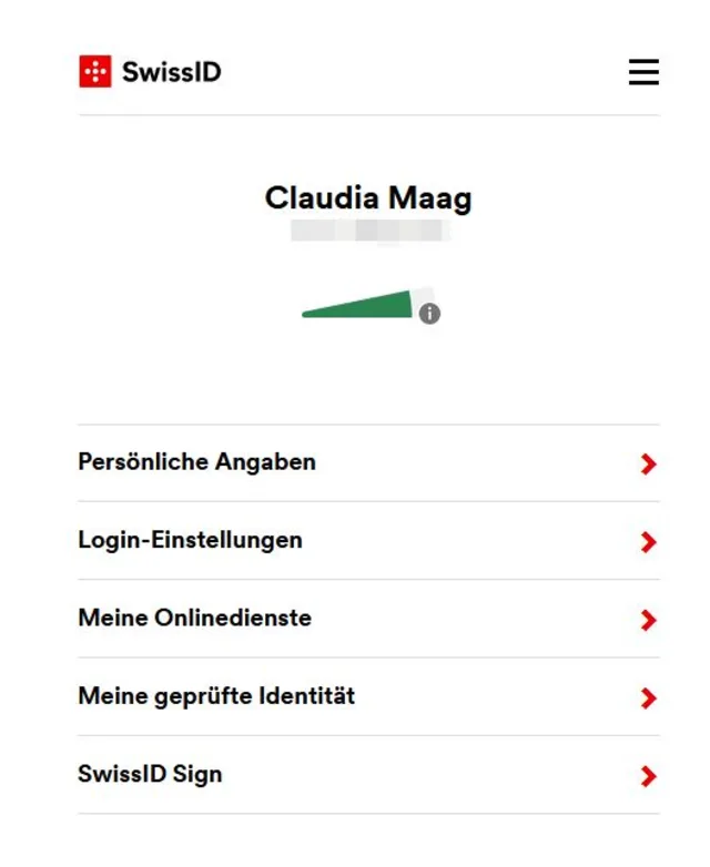 Ansicht «Eingeloggt» bei SwissID