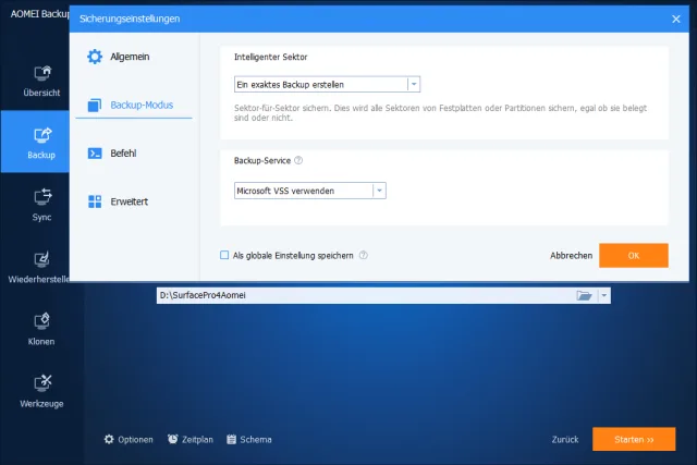Bild 2: die Aomei-Backupper-Optionen
