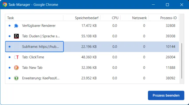Der Task-Manager in Google Chrome