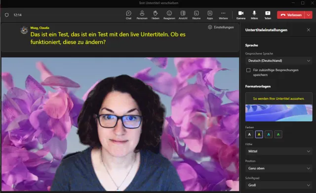 Teams: Liveuntertitel anpassen und verschieben