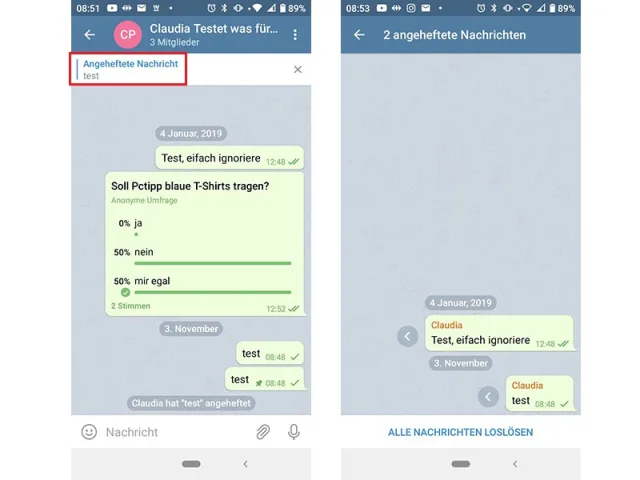 Telegram: Mehrere Nachrichten anheften – so gehts