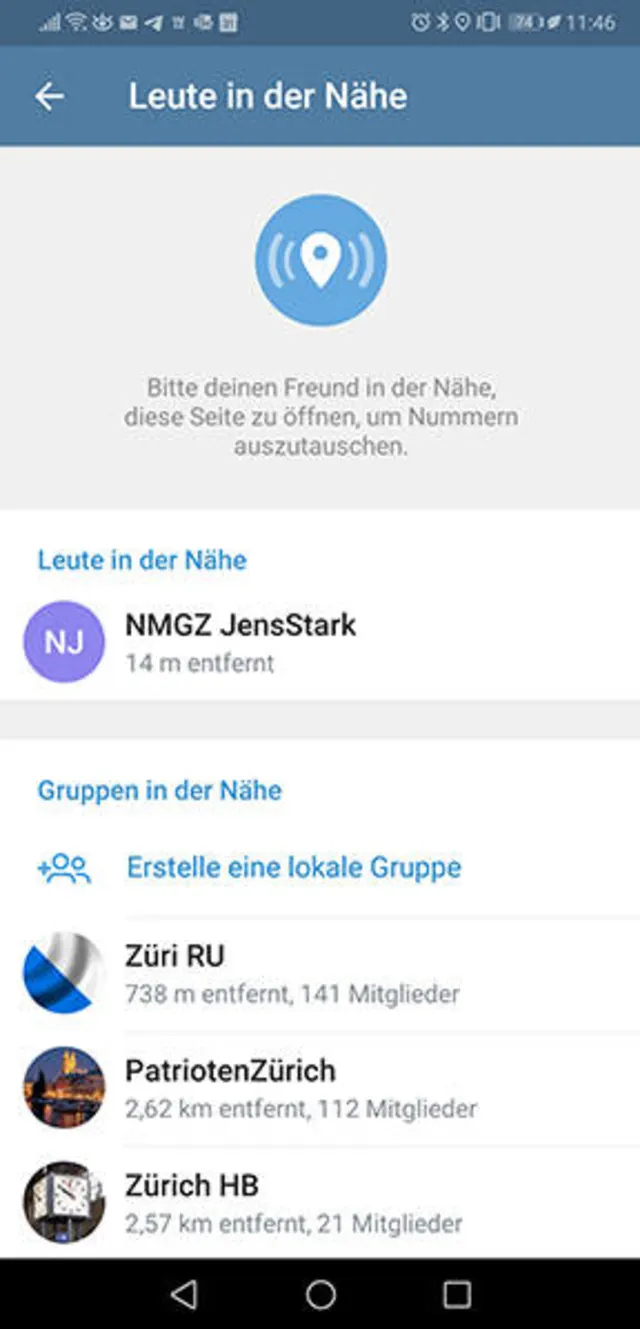 Telegram: Personen in der Nähe finden