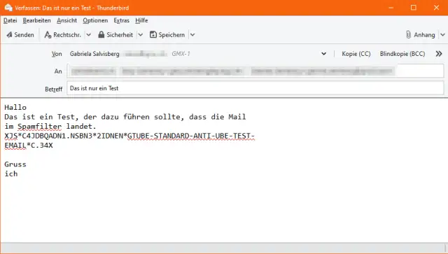 So könnte die kurze Testmail aussehen. Der Zeilenumbruch in der Zeile mit dem Testcode ist nur im Ansichtsfenster und wurde vom Mailprogramm selbst eingefügt