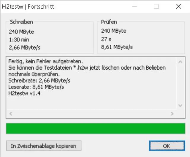 Grössen- und Fehlerkontrolle – Tool Nr. 1: H2testw