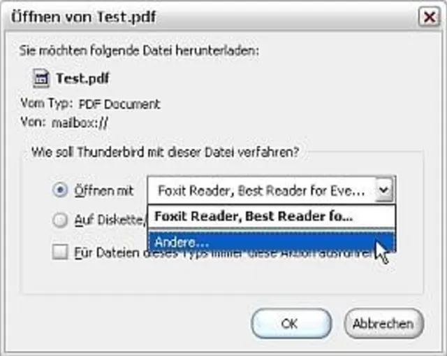 Thunderbird: Anhänge mit gewünschtem Programm öffnen