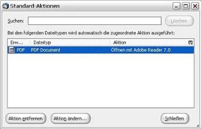 Sie können die Aktion dort entfernen, falls Sie in Zukunft PDFs doch mit einem anderen Programm öffnen möchten, oder auch ändern, z.B. angeben, dass PDFs immer auf Ihrem Computer gespeichert werden sollen.