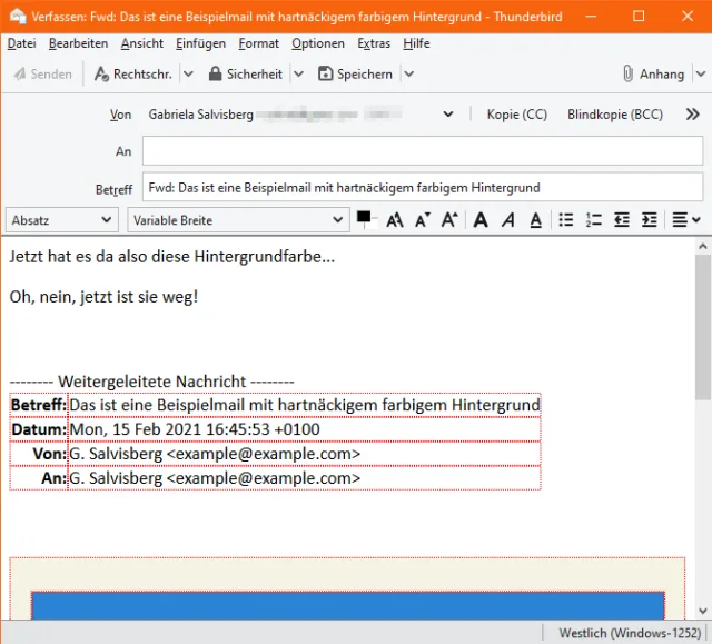 Thunderbird: Farbigen Hintergrund beim Weiterleiten und Antworten loswerden