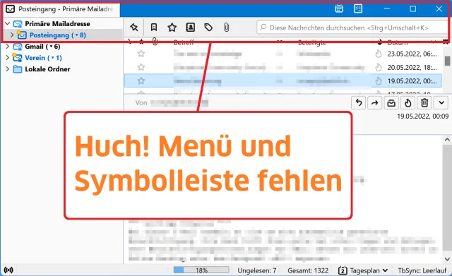 Thunderbird: Menü- und Symbolleisten verschwunden!