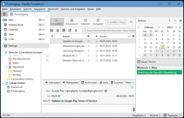Ein Mailkonto in Thunderbird im Jahr 2017