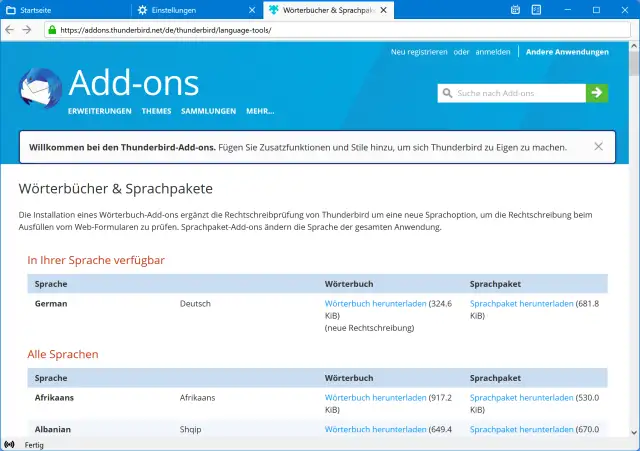 Thunderbird: Rechtschreibprüfung in Deutsch hinzufügen