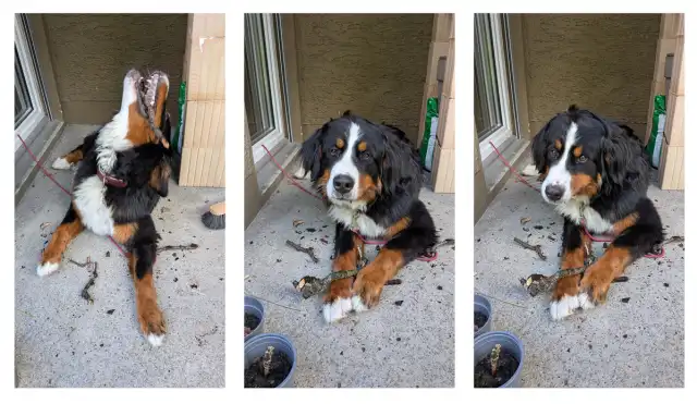 Gerade bei bewegungsfreudigen Hunden – etwa beim Rennen, Spielen oder Springen – ist es kaum möglich, den perfekten Moment mit einem einzigen Foto zu erwischen. Einfacher geht es mit dem Serienbildmodus. Mit diesem schiesst Ihr Smartphone innert einer Sekunde mehrere Fotos, aus denen Sie das Beste aussuchen können, Bild 2.