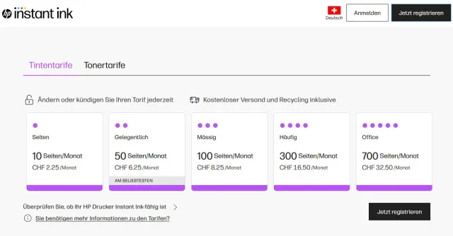 Tipp: HPs Trumpf für einen günstigen Druck nennt sich «Instant Ink». Dabei handelt es sich um eine Flatrate fürs Drucken. Mehr dazu in der Box.