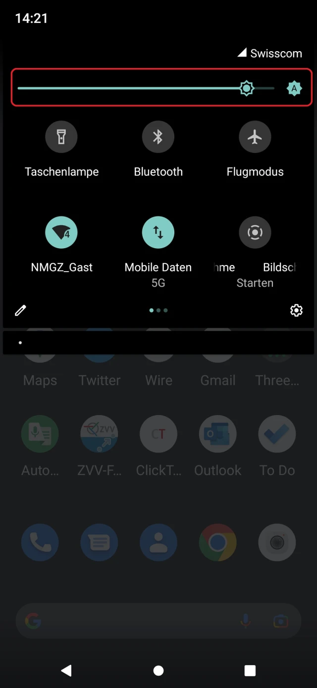 Der obere Rand zeigt meist kleine Icons zu verschiedenen Elementen (WLAN, Mobil, Providername, Akku-Ladestand) sowie Symbole zu neuen Benachrichtigungen. Ziehen Sie den oberen Rand mit dem Finger herunter, erscheinen Schnellzugriffe, beispielsweise Ein-/Aus-Buttons von WLAN, Bluetooth, Flugzeugmodus und mehr.