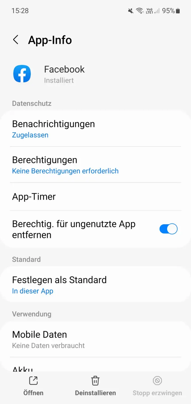 Bild 12: hier die App-Infos zur vorinstallierten Facebook-App auf einem Samsung-Gerät