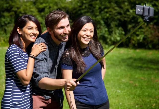 Noch ein Tipp am Rande: Fotografieren Sie sich bei Selfie-Aufnahmen von leicht oben und nicht von unten, dann sehen die Fotos meist vorteilhafter aus.