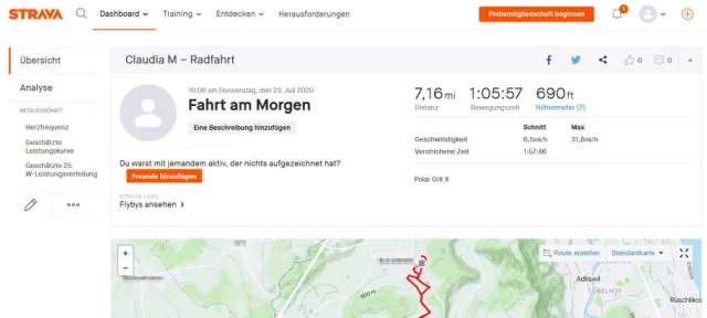 Sind die beiden Dienste synchronisiert, sehen Sie Ihre Polar-Trainings auch in der Strava-App
