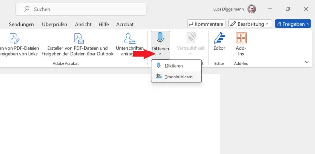 Derzeit ist die Transkription in Word nur für zahlende Microsoft-365-Kunden freigeschaltet und funktioniert in der Word-Desktop-App für Windows und in der Web-App, Bild 1. Mac- und Linux-Nutzer müssen also die Webversion von Word verwenden.