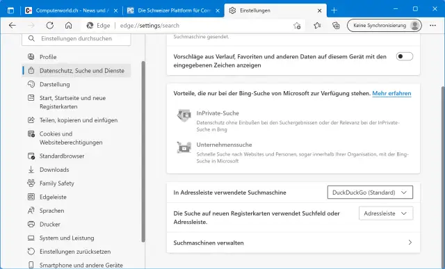 Die Suchmaschinen-Einstellungen in Microsoft Edge