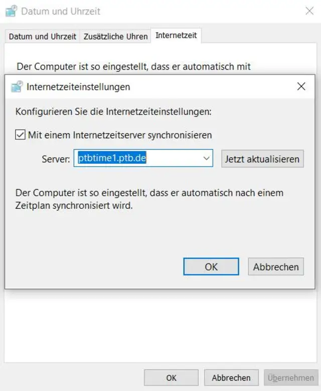 - Beim Server tippen Sie folgende Parameter ein: ptbtime1.ptb.de