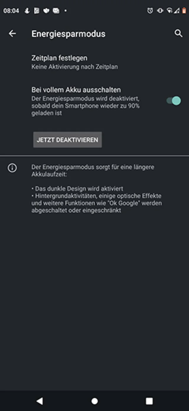 Wenn der Energiesparmodus an ist, werden u. a. Hintergrundaktivitäten eingeschränkt oder ausgeschaltet